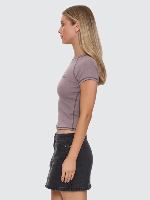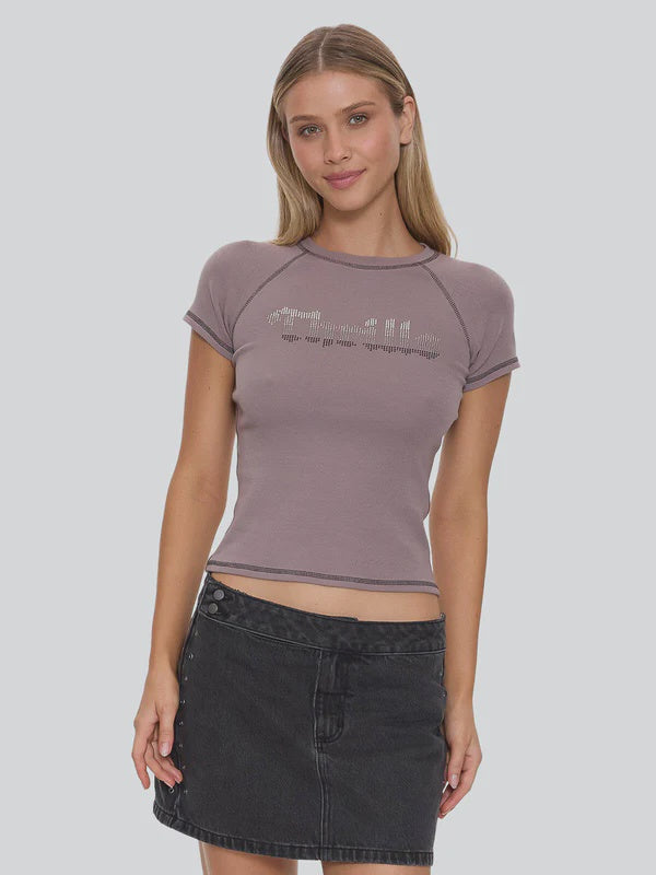 Glitch meets glam in the Glitch Studded Raglan Club Tee in Shroom, featuring a slim, body-skimming cut with classic raglan sleeves and metal stud hits for low-key shine. Crafted from premium fine-rib cotton with a touch of stretch, it hugs where you want, holds its shape, and feels sturdy from first wear. Contrast cover-stitching frames the seams for a throwback sport vibe, while the cropped length keeps this raglan tee easy to dress up and easy to rough up.