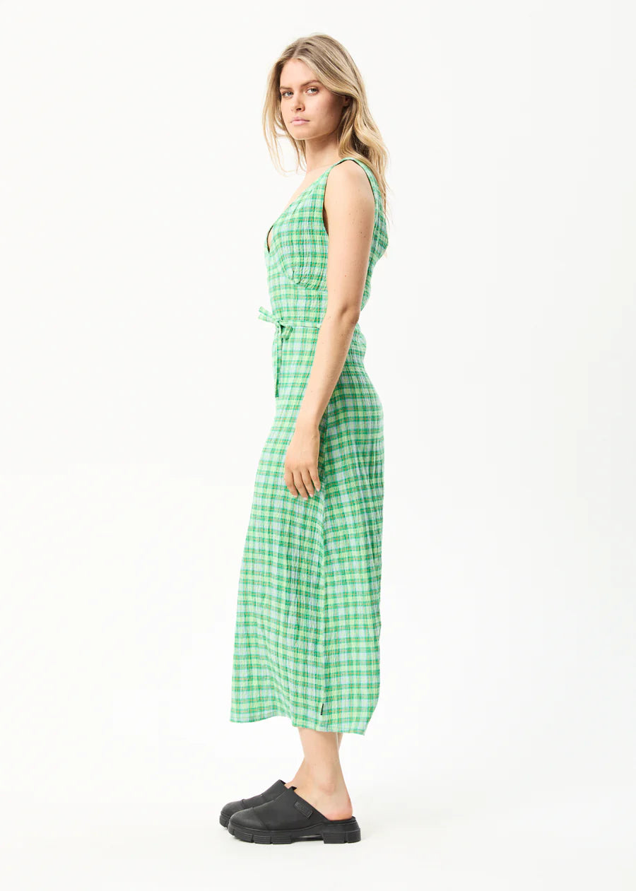 Feel like a goddess in the vibrant tully maxi dress. Slip into a flattering relaxed-fit maxi silhouette, deep V neckline, slight bodice Cinching and a string to tie at the front or back. Keep all things green related with 100% eco-friendly soft-feel and lightweight fabric, crafted from a premium hemp and tencel blend. A head to toe fit - checked off the list.