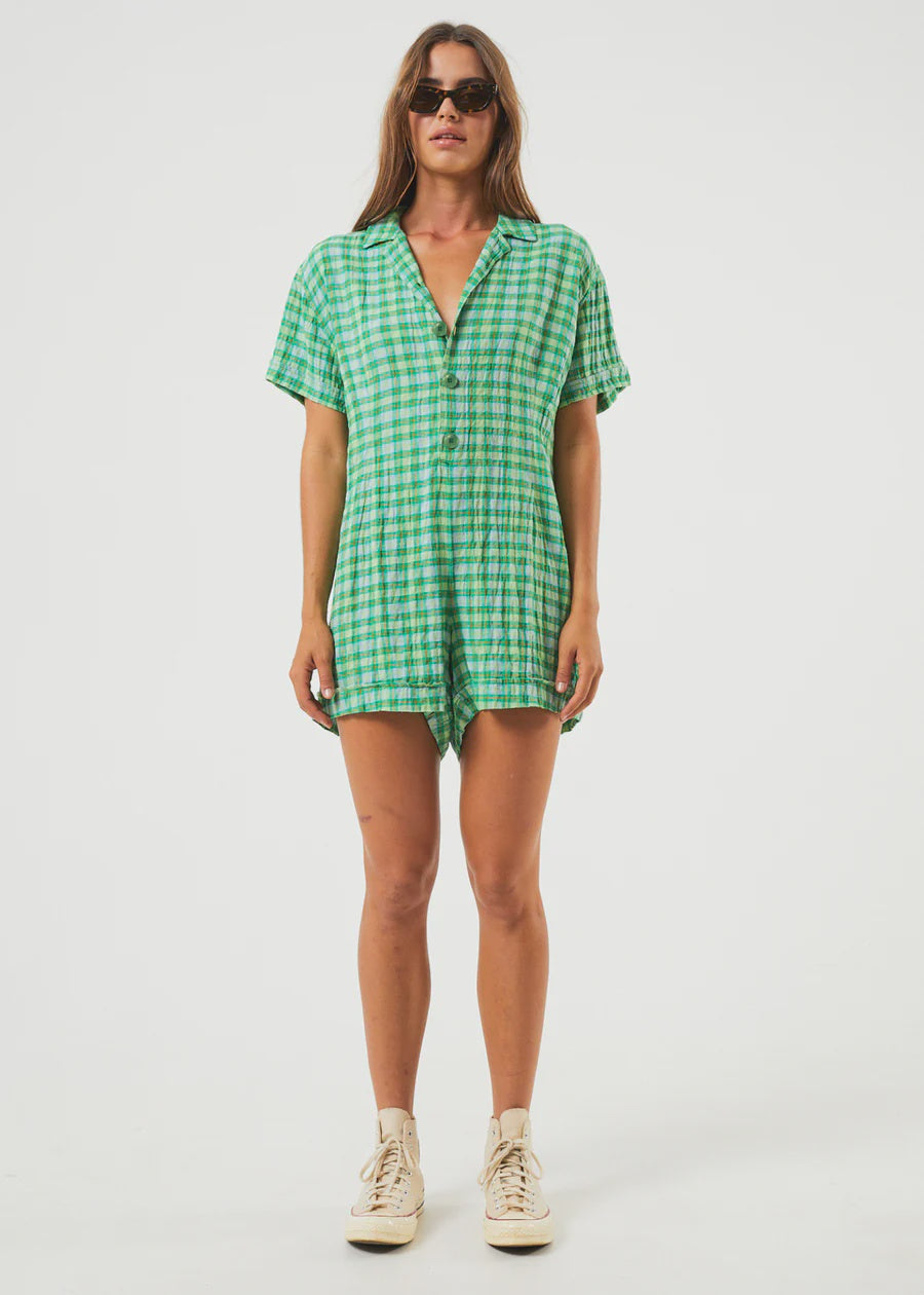 Style and practicality in the tully kokomo playsuit. No need to think - just button-up and out the door with a relaxed fitting romper silhouette and flattering v neckline collar. Go green in the vibrant tully check, crafted from a 100% eco-friendly blend of hemp and organic cotton twill. An easy go too that you will reach for time and time again.